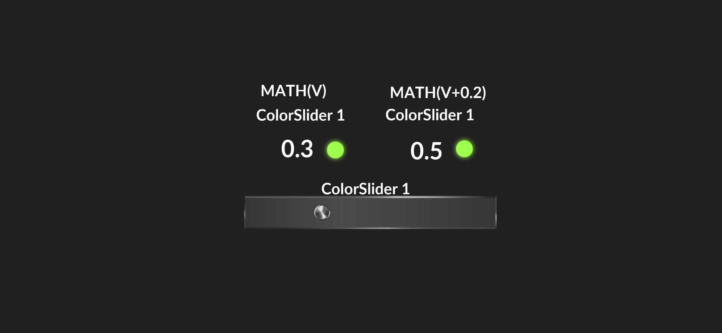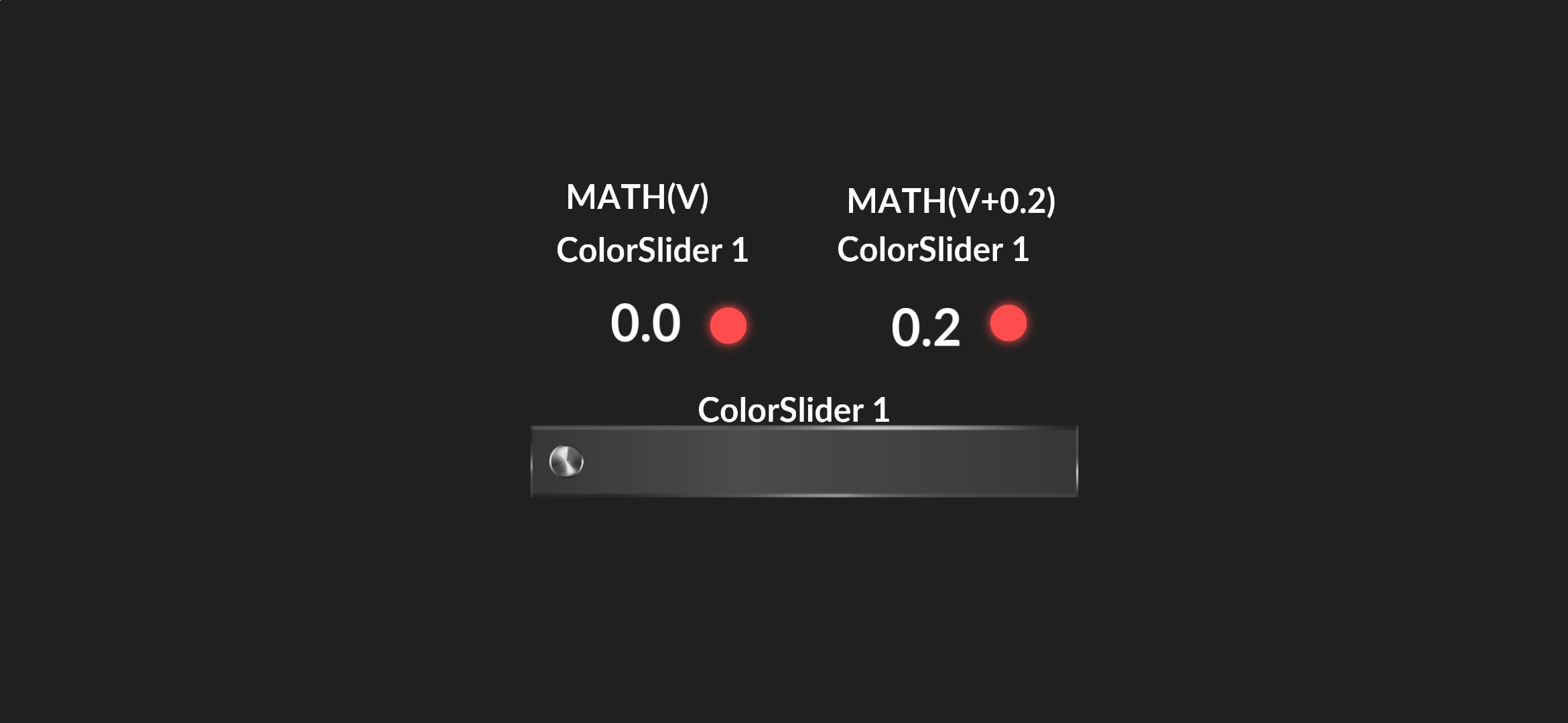 If I set the blending parameter using the COLOR SLIDER 1 (0.0 - 1.0) and change the color using the slider, the color will match. But what if I enter the math V+0.2 on the image? Will the color change by 0.2 in this case? No, it won’t! Is there a way to bypass this?