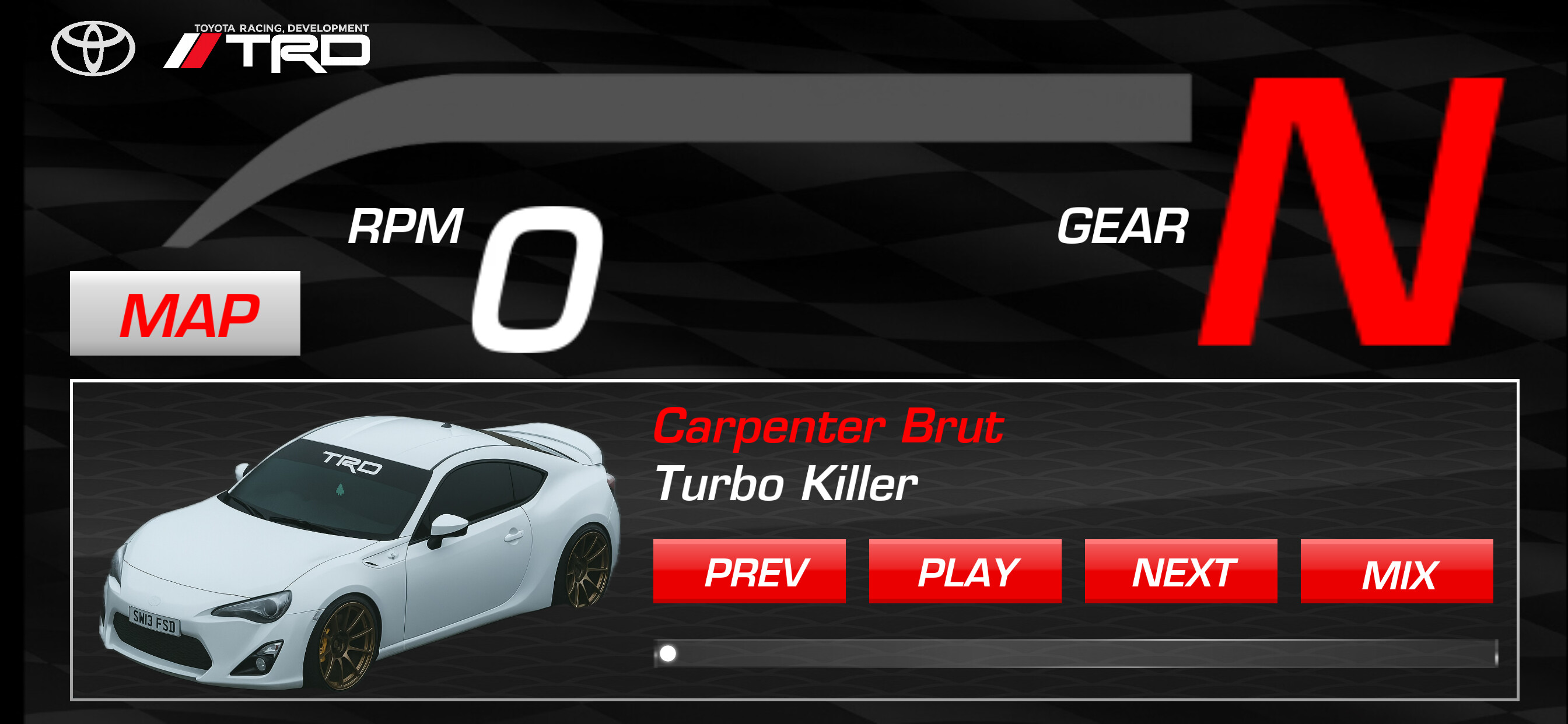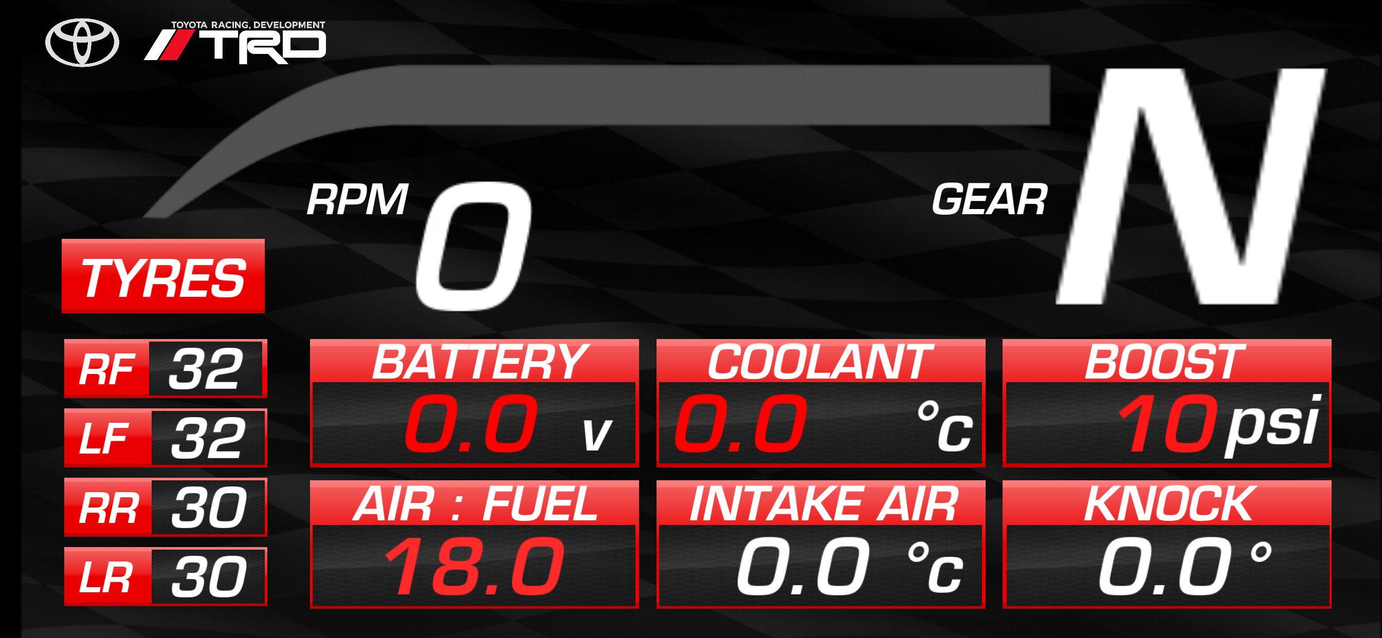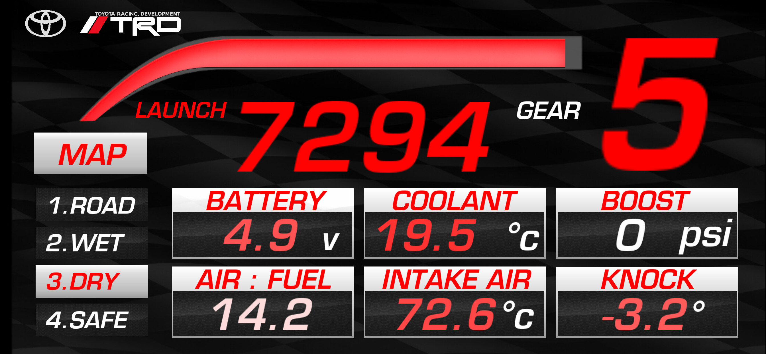 • Pressing the TRD logo switches the dash to a red “sport” theme