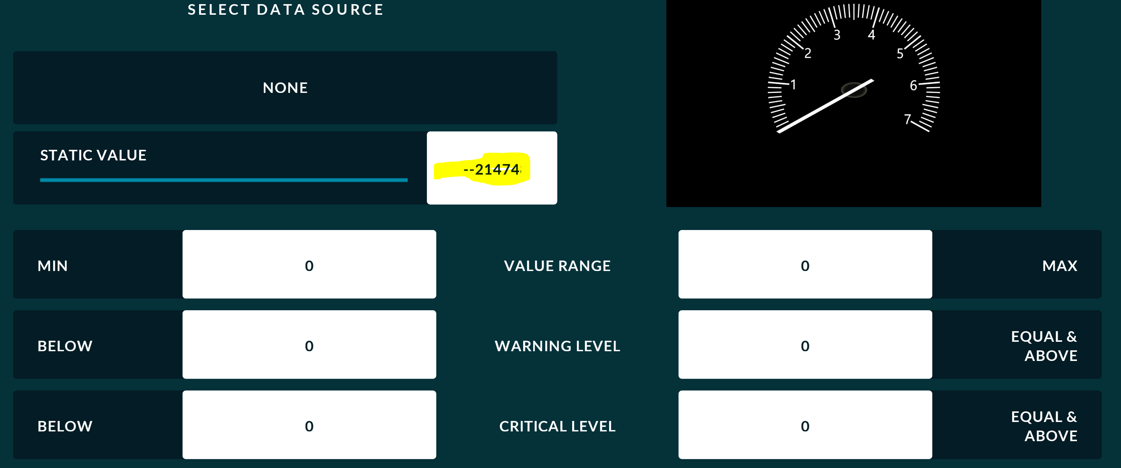 The Simulation mode is used for testing, but you do need to set the Range. Your RPM gauge range shows min:0 max:0, so obviously its not moving.