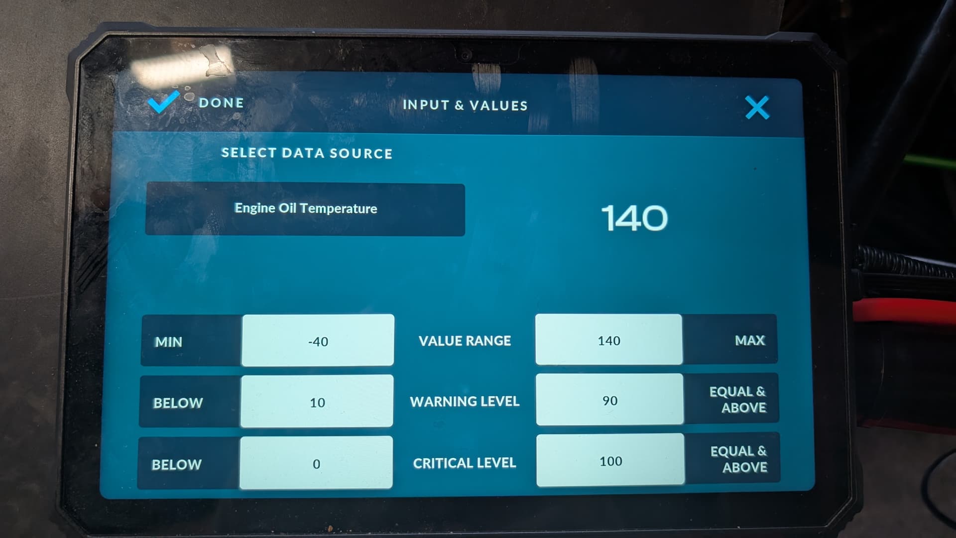I have multiple other values working fine ie rpm,tps,boost,coolant temp ect and the oil pressure which is an additional input on the ecu is working fine but oil temperature I can’t seem to pin point the whereabouts of the data on the app (Working fine on ecu/MEITE).