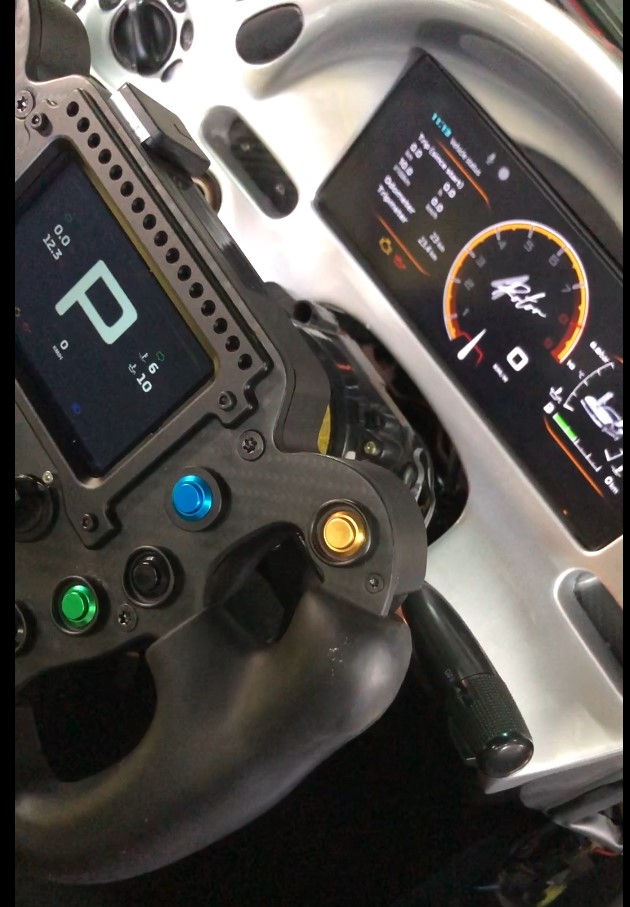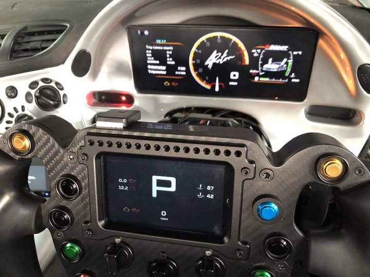 The steering wheel display and main dashboard were shown via Wi-Fi and Bluetooth.