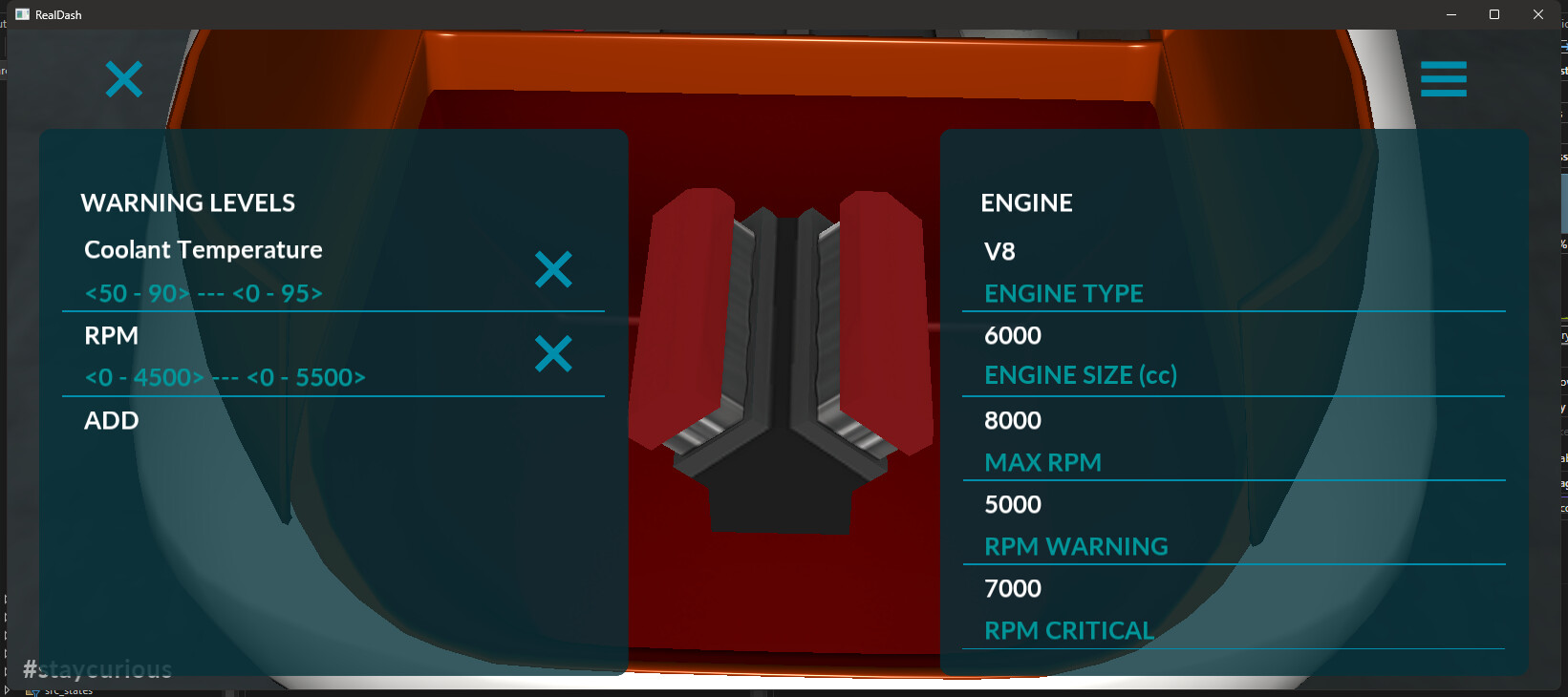 Now its possible to set vehicle specific warning and critical limits from the Garage. If limits are set in the Garage, they will override any warning and critical levels set for the gauges in active dashboard.