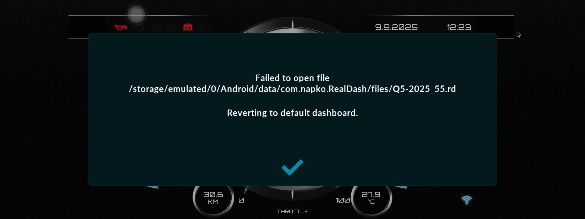 It doesn’t depend on the specific version. But occasionally on Android, when launching the RealDash application, the skin is reset to default. I believe this is due to a lack of memory. Although the RAM is 4Gb. This only happens if the skin has a very large weight starting from 40 Mb. But sometimes it also happens on small skins like “Virtual Cockpit”